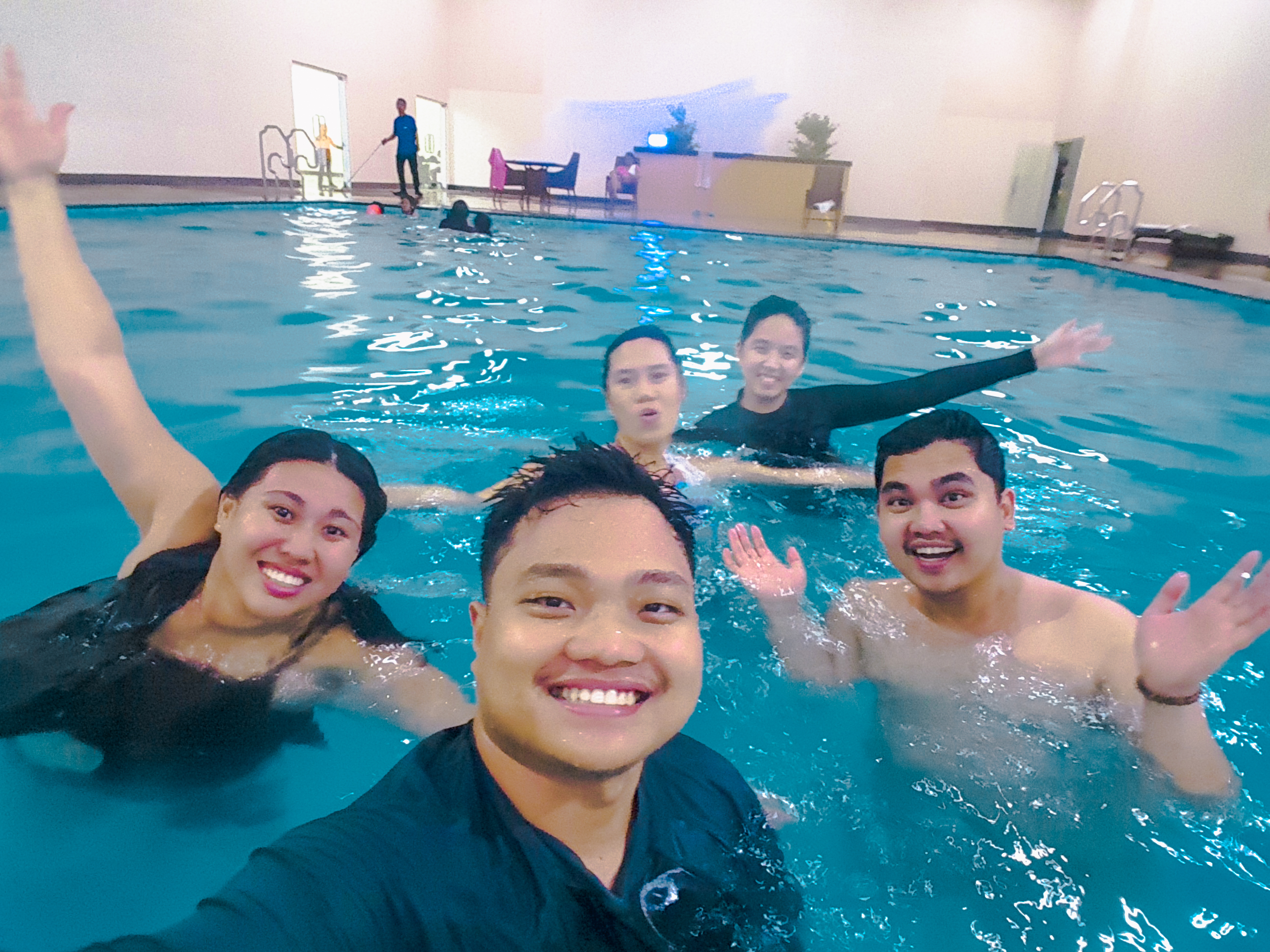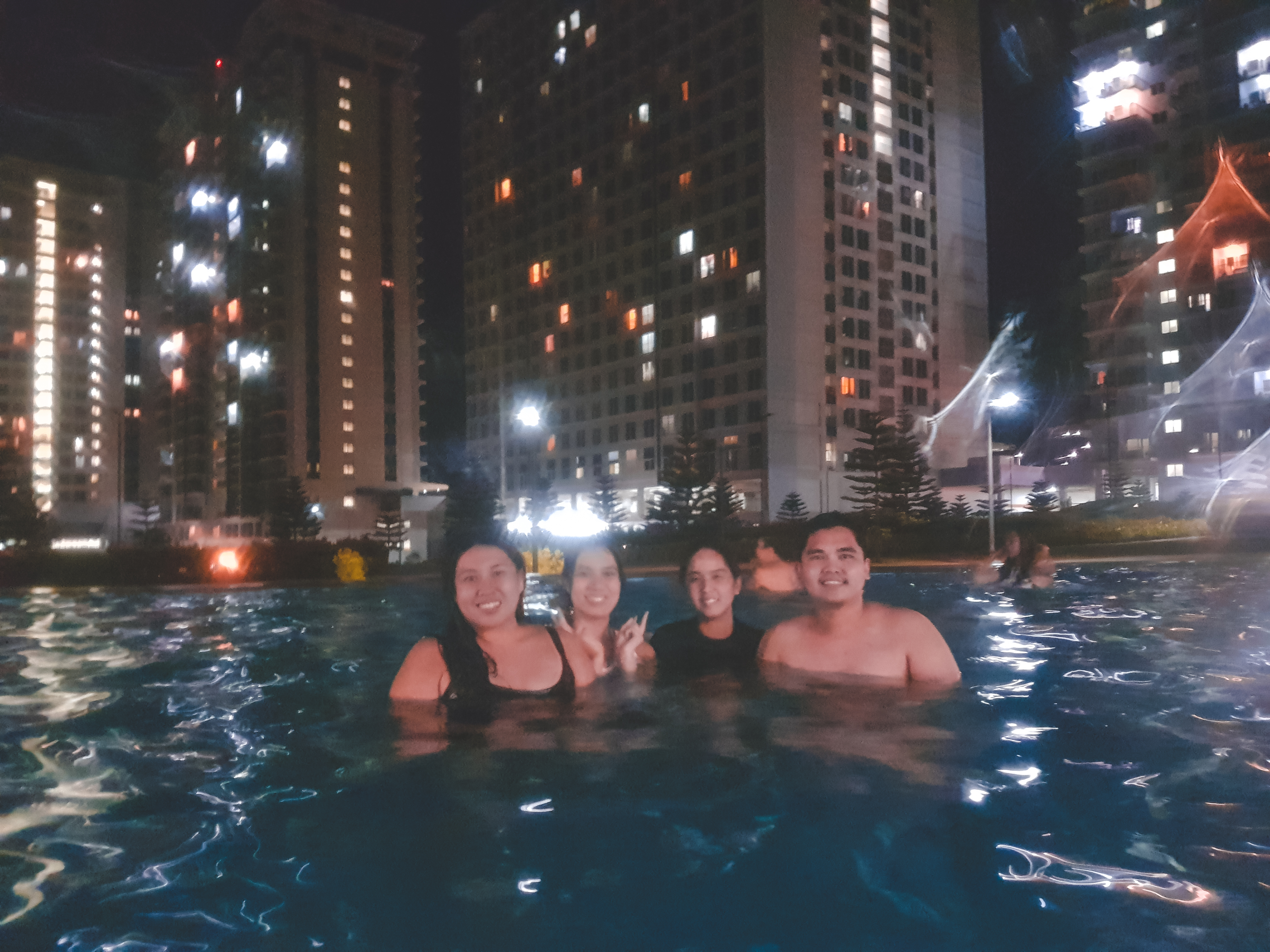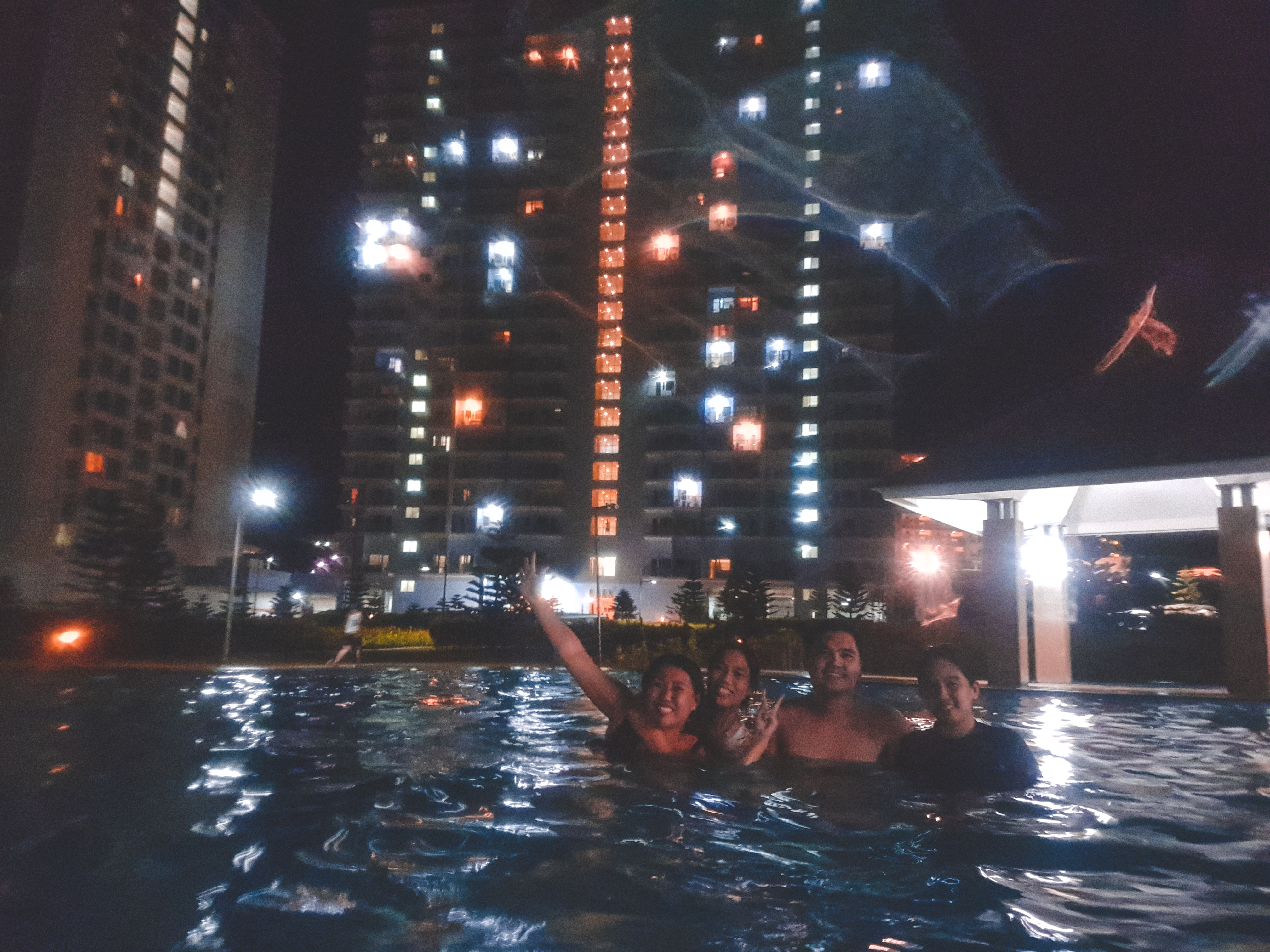 After our dinner, we went to our unit first to change into our bathing suits and then went to their clubhouse indoor and outdoor pools. We had a lot of fun playing and horsing around the pool and we are so noisy that some guests there are staying away from us 😀 hahaha but anyways here are some pictures of our crazy selves.
