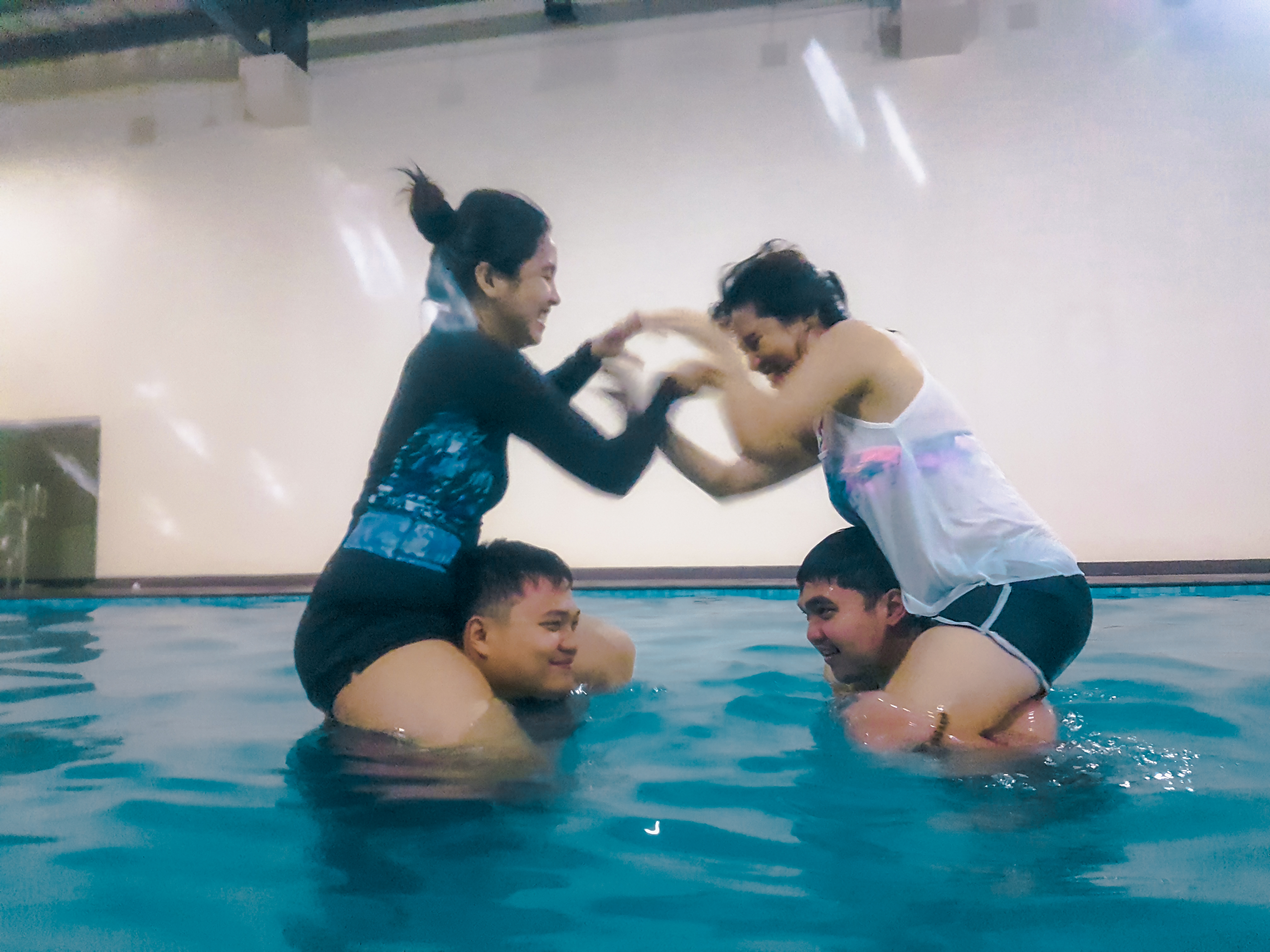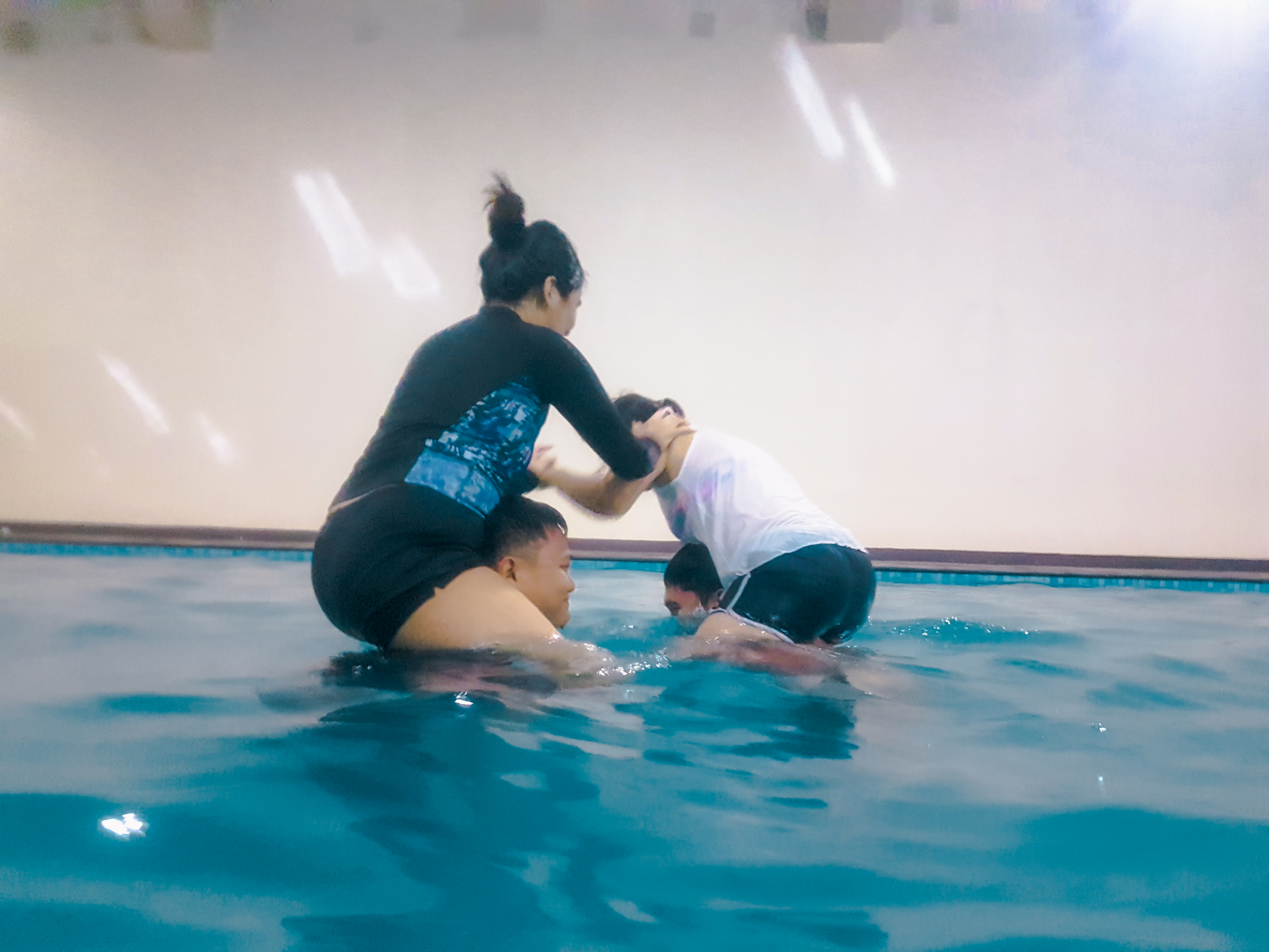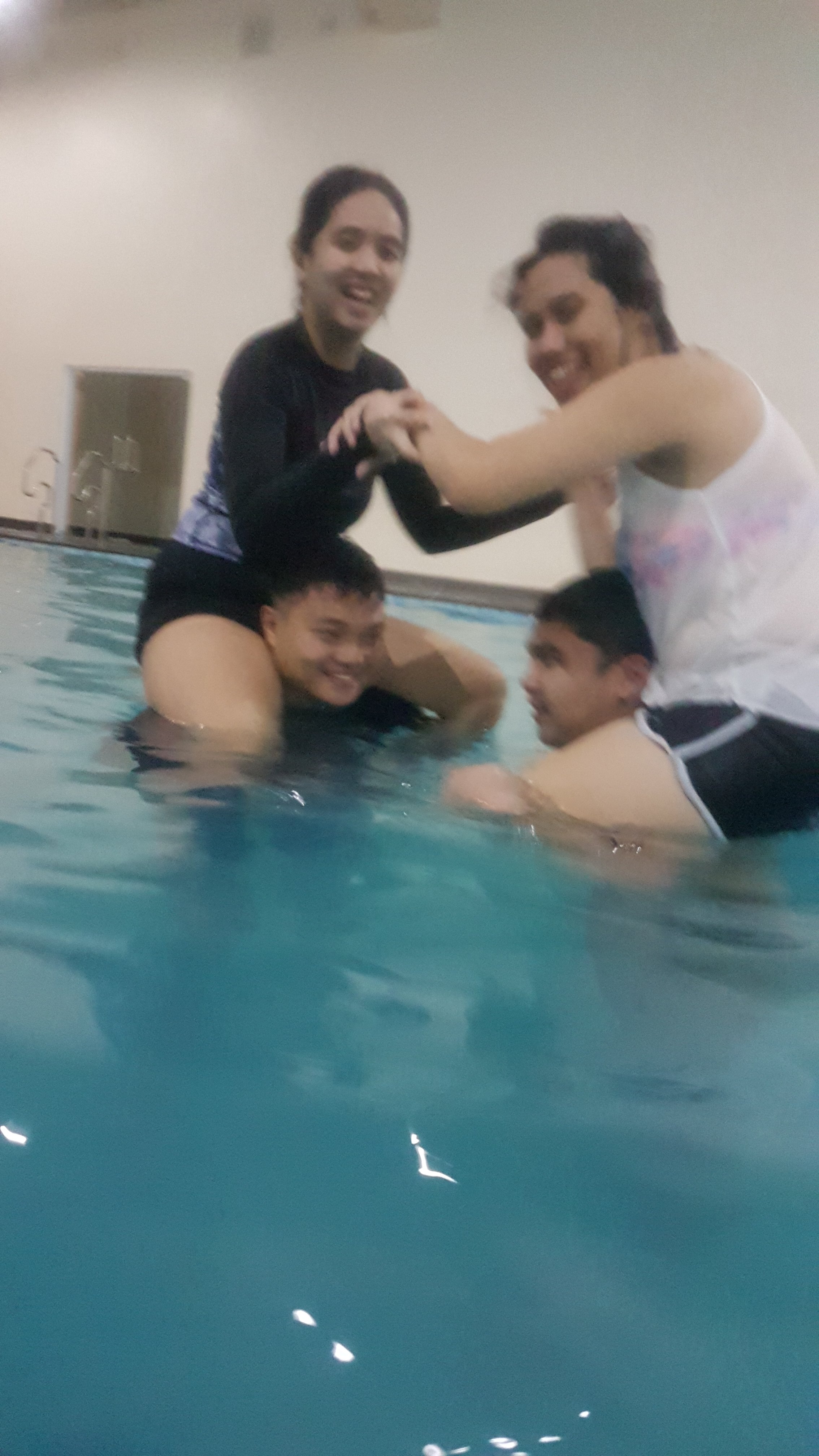 Our wrestling match in the pool ! Guess who’s the winner?